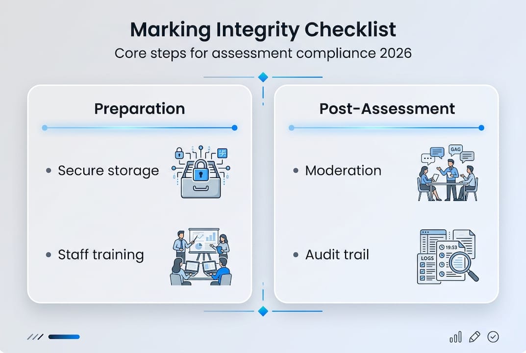 Centres that invest in cross-referencing their checklist outcomes against actual learner results and marker consistency data find something revealing: discrepancies between checklist completion and outcome quality expose exactly where the culture needs work. That kind of evidence-driven reflection, guided by assessment principles and AI, raises standards far more reliably than compliance documentation alone. Honest internal moderation, where assessors genuinely challenge each other's marks, is worth more than a perfectly formatted checklist that nobody reads critically.
