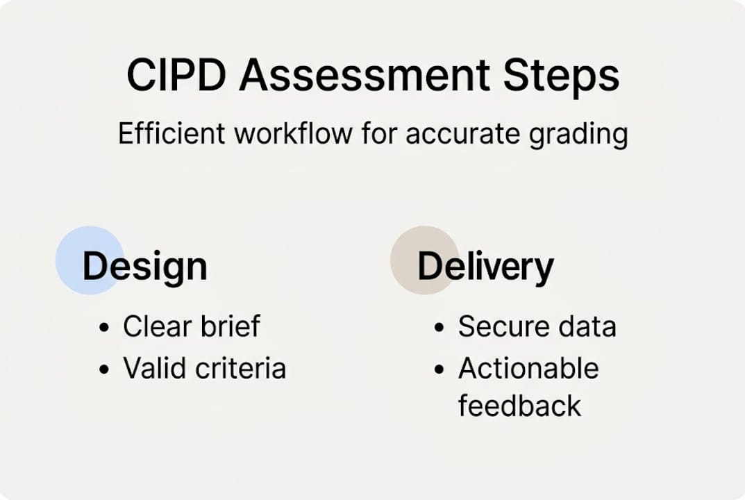 With the right tools in place, the focus shifts to the practical workflow of assessment design, delivery, and marking. CIPD-approved centres must follow standards for assessment delivery, and those standards begin well before a learner submits anything.