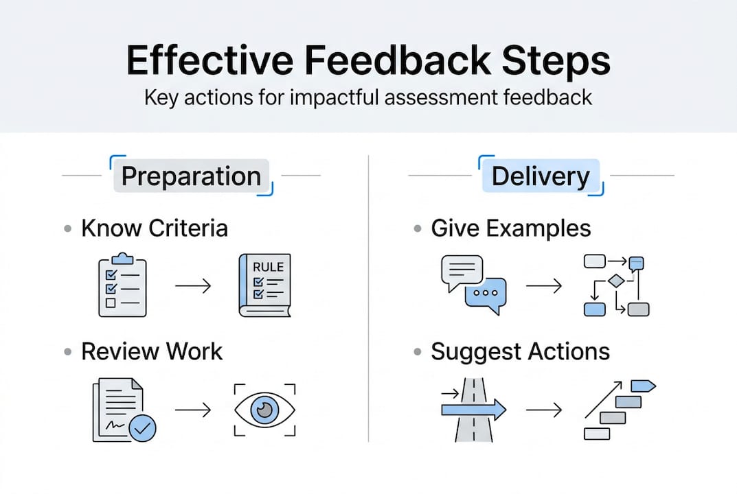 Pro Tip: Before any feedback session, write down three specific examples from the learner’s work, one strength and two development areas, to anchor your conversation in concrete evidence rather than general impressions.